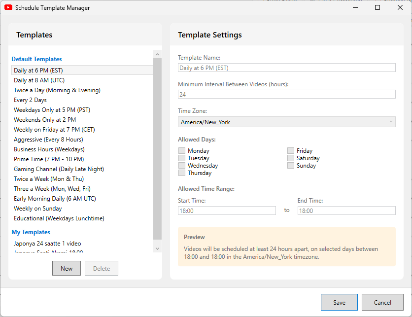 4. Powerful Automation & Scheduling Publish Immediately: Go live as soon as your videos are done uploading. Schedule for a Specific Date: Plan your content calendar by setting a specific future date and time for each video to be published. Smart Scheduling Templates: Create custom templates for complex publishing schedules, such as "Every weekday at 6 PM" or "2 videos per day on weekends." The system will automatically sequence and publish your videos according to your rules.